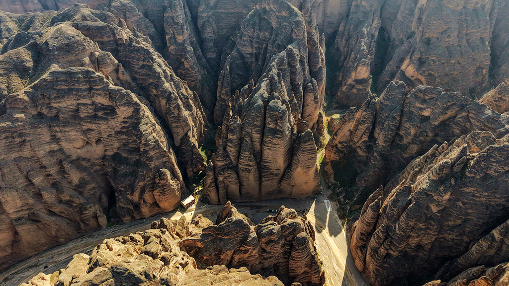 10月26日,白银市景泰县的黄河石林国家地质公园内,千峰竞秀,峡谷交错,构成一幅气势恢宏的自然画卷。秋日暖阳下,这片历经亿万年地质变迁的奇观更显壮丽雄浑,吸引着八方游客纷至沓来,沉浸在这片大自然的鬼斧神工之中。