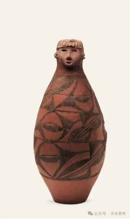 人头形器口彩陶瓶是大地湾仰韶彩陶的代表作品,也是我国史前时期集彩陶、雕塑、造型于一身的杰出艺术品,2013年被国家文物局列入第三批禁止出国(境)展览文物。