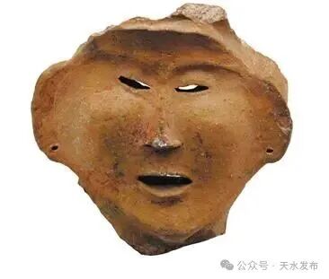 如果说大地湾出土的人头形器口彩陶瓶上体现的是原始社会少女恬静的笑。那么天水麦积区柴家坪遗址出土的红陶人画塑像则体现的是原始社会一个中年妇女惊讶的笑。这件仰韶文化晚期的人面塑像高15.3厘米、宽14.6厘米,现收藏于甘肃省博物馆。人面高颧阔面、鼻梁低矮、两眼内扣,半张着的嘴似乎在和人聊天,谈笑自若,面部和嘴部肌肉紧张的状态在微笑的表情中含着一丝惊愕,生动呈现了远古先民的神韵,也体现了古代雕塑家高超的雕塑工艺。