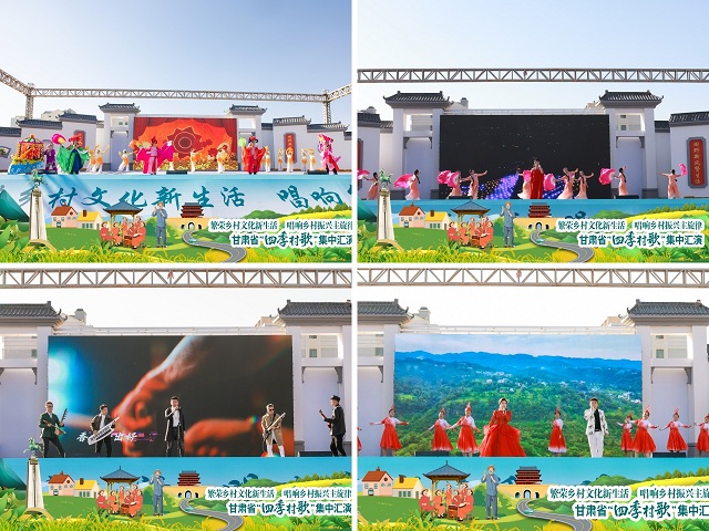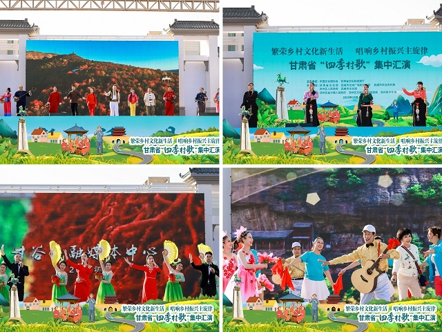 10月27日至29日,由中国文化馆协会和甘肃省文化和旅游厅主办,甘肃省文化馆、武威市文体广电和旅游局、武威市农业农村局、凉州区人民政府、武威市文化馆承办的全省“四季村歌”集中汇演系列活动在武威市凉州区金沙镇成功举办。甘肃省文化和旅游厅一级巡视员吕兴来出席活动并讲话,武威市委常委、宣传部部长陆世平出席活动并致辞。各市州文旅部门选派的16支“村歌”团队228名演职人员参加系列展演,30余支“网络达人”团队直播相关活动,当地干部群众、游客4000余人观看演出、参与系列活动。