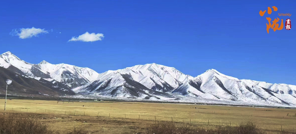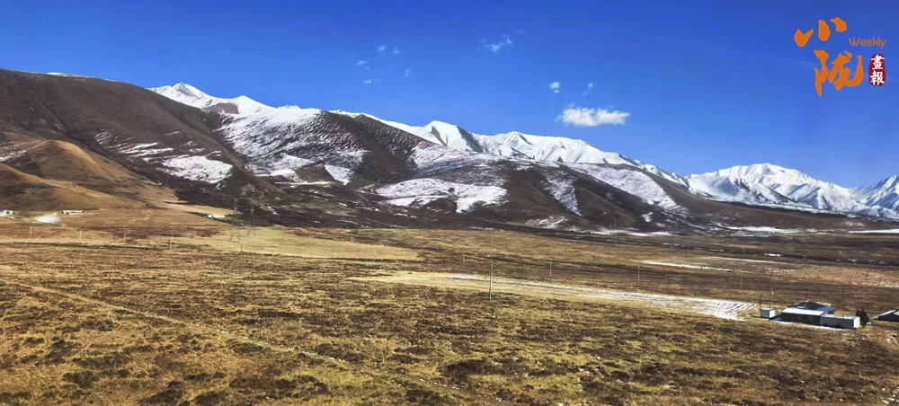 蓝天澄澈如洗,雪山在阳光下泛着冰清的素白,脚下草原铺展成辽阔的金黄,尽现西北大地独有的苍茫和宽广,漫过视野,别具风情。