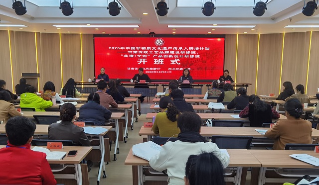 10月31日,由甘肃省文化和旅游厅指导、西北民族大学主办的2025年中国非物质文化遗产传承人研修培训计划“甘肃传统工艺品牌建设研修班”和“‘非遗+文创’产品创新设计研修班”同时在西北民族大学举行开班仪式。