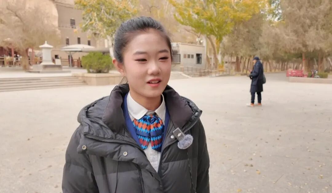 敦煌二中学生王泓淼说:“参观莫高窟之后,我深切领略到了敦煌文化的魅力。作为敦煌学子,我们也应该将敦煌文化继承并发扬光大,让更多人看到她的美丽。”