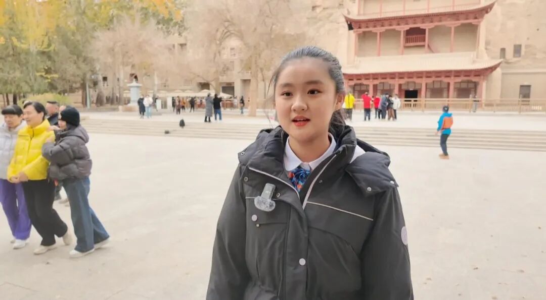 敦煌二中学生李雨阳说:“学校每年都会组织各个年级来莫高窟研学,但每次来都会有不同的体验和收获。通过这次研学,我们参观了不同的洞窟,在洞窟中真切体会到了古代劳动人民的智慧。”