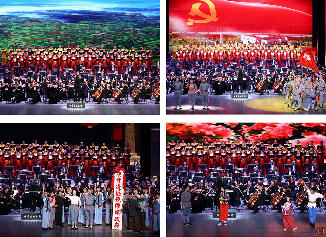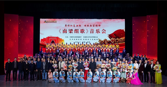 11月7日晚,由甘肃省文化和旅游厅、甘肃省文学艺术界联合会、庆阳市委、庆阳市人民政府主办,庆阳市委宣传部、庆阳市文体广电和旅游局、甘肃省音乐家协会、庆阳市融媒体中心、南梁革命纪念馆承办的“跟着艺术游甘肃”《南梁组歌》音乐会在庆阳大剧院震撼首演,为纪念陕甘边区苏维埃政府成立91周年献唱激昂澎湃的赤诚之歌,奏响新时代红色基因的奋进强音。