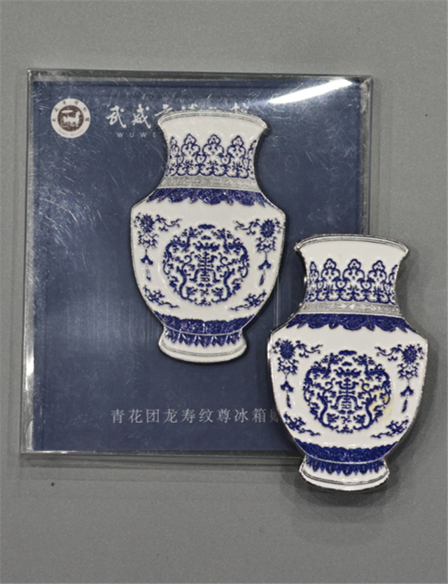 以武威市博物馆馆藏的清嘉庆青花团龙寿纹尊为原型,精准复刻文物外观及纹饰细节,将珍贵文物转化为日常可见的物品,既具装饰性,又能唤起人们对历史文物的兴趣。