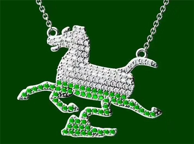 铜奔马主题文创镶钻项链,以铜奔马为原型,将其灵动的身姿巧妙复刻为吊坠造型,镶嵌的钻石如点点星光。