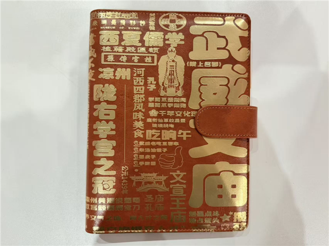 将武威文庙标志性建筑(如棂星门、桂籍殿)以烫金线描形式还原于笔记本封面,搭配同风格金属笔,通过棕金配色与礼盒形制,既保留文庙的古典庄重感,又以简约精致的工艺适配日常书写与文化收藏的双重需求。