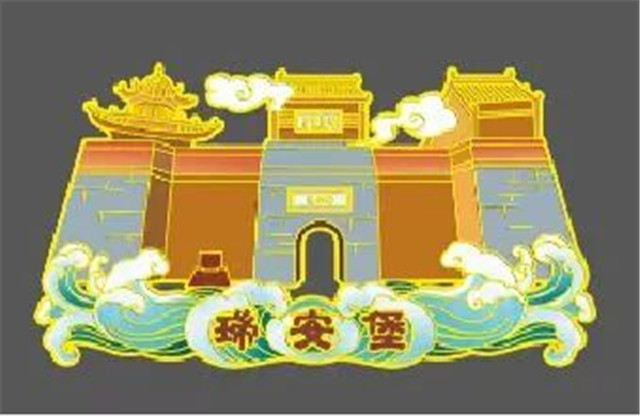 冰箱贴(瑞安堡)以近现代建筑瑞安堡为原型,将瑞安堡建筑风貌生动呈现,加以祥云纹、水纹修饰,增加了文创作品的艺术价值,提升了文创作品美感度。