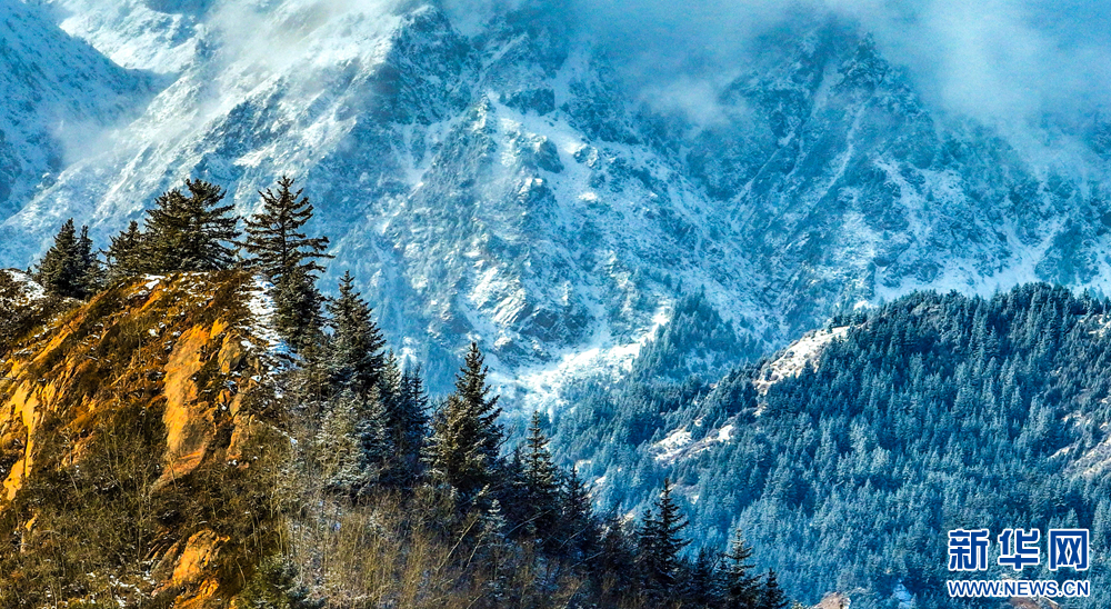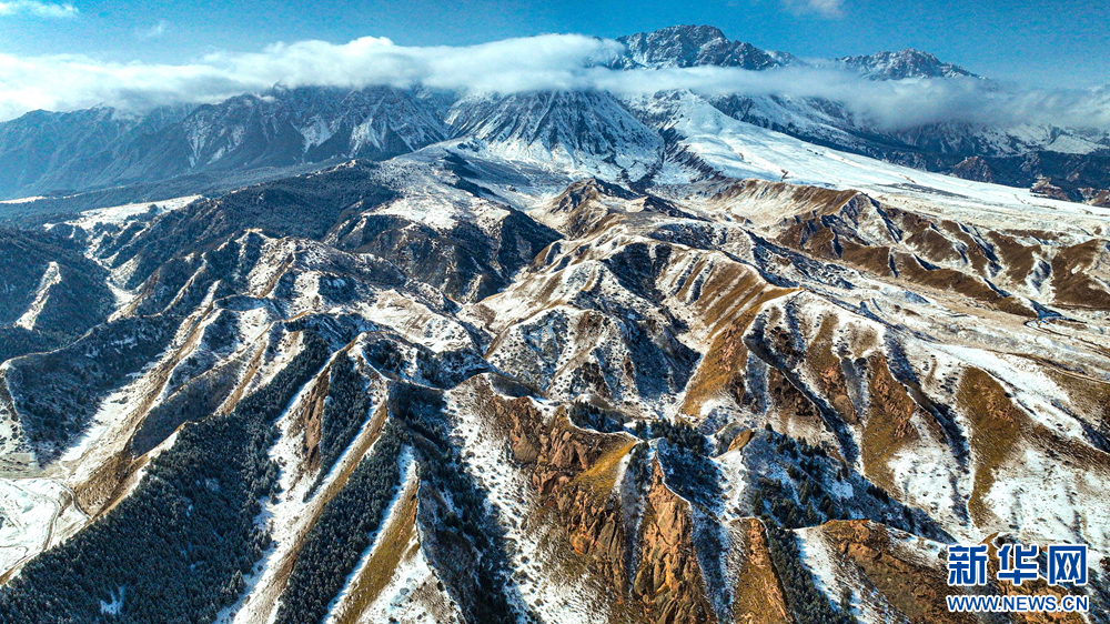近日,一场大雪过后,甘肃省张掖市肃南裕固族自治县马蹄藏族乡境内,群山银装素裹,峰峦间云雾缭绕,尽显祁连山独有的雄浑壮美。新华网发(王将 摄)