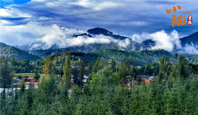 母山若“帽”耸立,巍峨壮观,翠色松枝铺展开来,散发着阵阵幽香,云雾漫过轮廓秀丽的山巅,无意间给这个初冬添上了最美的符号。