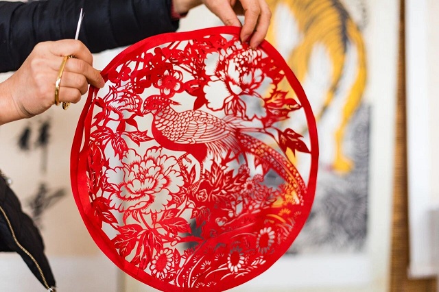 通渭剪纸风格简练明快,题材多取花鸟民俗,常用于节庆装饰与礼仪场合,近年来更走进校园,成为美育课程的重要内容。