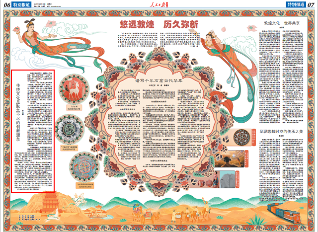 转瞬间,我已90多岁。我一直铭记着父亲和林徽因先生对我的教诲与期望,他们希望我结合图案课的教学与现代设计应用的需要,对敦煌图案进行系统整理与研究。我这样去做了,履行了对前辈的承诺。但这仅仅是一个开始。我把同样的教诲与期望,给予年轻一代,希望更多年轻学者、设计师、艺术家,脚踏实地、扎扎实实地投身于对敦煌艺术的保护、研究、学习与弘扬工作之中。通过一代又一代人接续传承和发扬,中华文化必将更加辉煌灿烂。(文/原中央工艺美术学院院长 常沙娜)