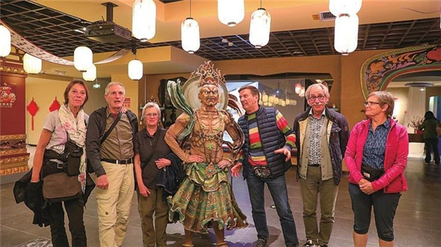 洞窟式沉浸剧场设计是亮点之一。当剧场大门缓缓打开,“星空”闪烁,敦煌独有的神秘古朴气息扑面而来。观众仿佛进入时光隧道,开启千年前的丝路之旅。“剧场的设计很匠心,一笔一画蕴含敦煌特色。”热爱敦煌文化、看过《乐动敦煌》的广东游客刘敏对中国旅游报社记者说,复刻的敦煌石窟藏经洞,窟内精美的壁画犹如一幅幅生动鲜活的历史长卷,在昏暗的灯光下徐徐展开。“还没看剧就先进入了历史情景,让人心中涌起一种莫名的感动。”刘敏说。