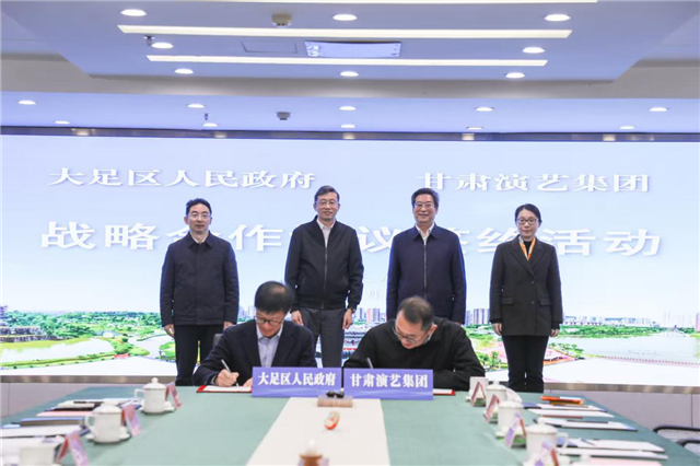 为深入贯彻落实习近平文化思想,践行“十五五”规划建议“推进文旅深度融合,大力发展文化旅游业,以文化赋能经济社会发展”的目标要求,积极服务成渝地区双城经济圈国家战略和甘肃省文旅强省建设大局,12月17日,甘肃演艺集团有限责任公司与重庆市大足区人民政府签署战略合作协议。此举旨在通过跨区域资源整合与协同创新,打造具有全国示范意义的文旅融合标杆项目,为推动文化事业与文化产业高质量发展,筑牢中国式现代化文化根基助力。