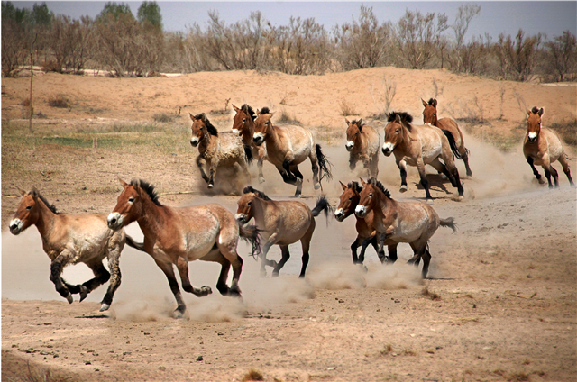 而另一款吉祥物“骋骋”的设计原型普氏野马,则是拥有6000万年漫长进化史的“生物基因活化石”。在武威神州荒漠野生动物园,普氏野马作为“荒漠三野”的核心成员,早已是圈粉无数的“顶流明星”——如今园内种群数量已达60多匹,矫健的身姿吸引着八方游客驻足打卡,成为来武必看的生态名片。