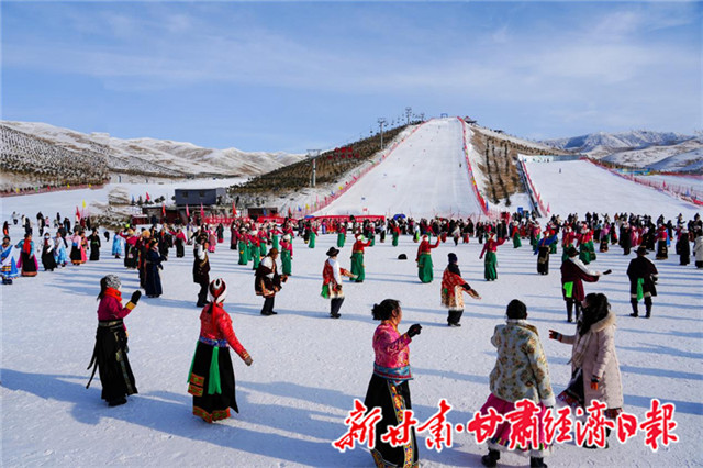 赛场外,各族群众身着民族盛装,在雪原上跳起热情的锅庄舞,围圈踏歌,旋律悠扬,舞步欢腾,绘就了一幅生动的民俗画卷。现场还同步开展了传统民俗体育项目展示与体验活动,进一步提升了游客参与感。(文/新甘肃·甘肃经济日报记者 房惠玲 图/天祝县委宣传部提供)