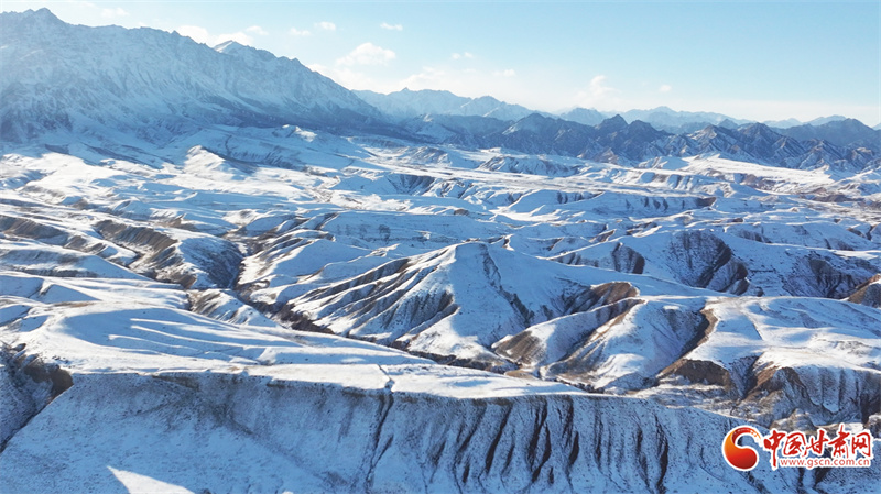 时下,位于民乐县境内的祁连山脉巍峨群峰被皑皑白雪覆盖,蔚为壮观。