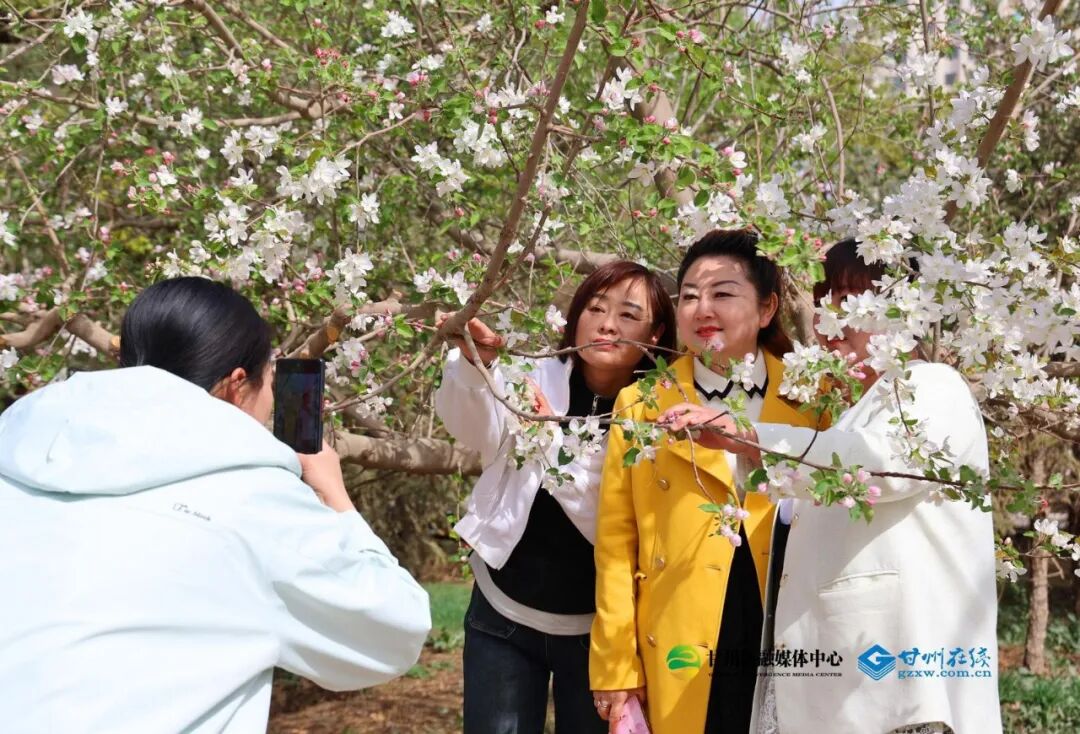 春光四月,在碱滩镇金满园农业科技有限公司千亩杏园里,一树树杏花白的像雪、粉的似霞,正在举办的“彩虹张掖诗意甘州”2025年花游季“杏绘春天”花间游园活动吸引了不少市民游客慕名前来赏杏花、阅民俗、品美食。