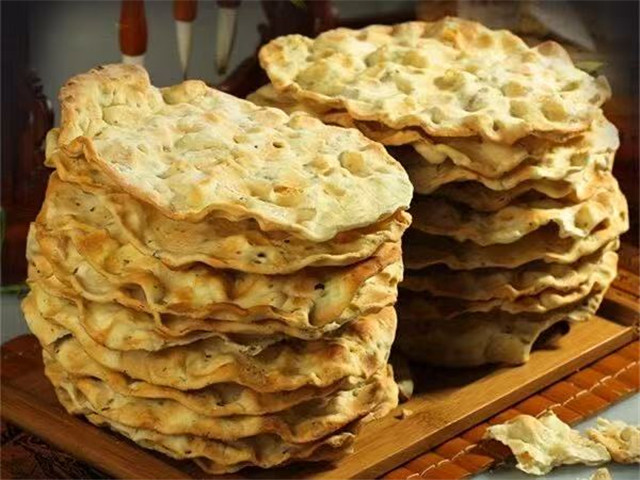 临洮的石子馍刚出锅,金黄表面带着石子烙出的凹凸小坑,外酥里嫩,保留着远古燔黍之法的焦灼香气,越嚼越香。