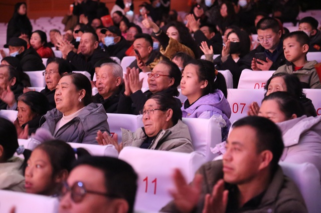 演出在《庆典序曲》欢腾的旋律中拉开帷幕,《西部民歌组曲》流淌出浓郁的黄土情怀,陇剧经典《枫洛池·辨草》《假婿乘龙》选段韵味醇厚,唢呐《黄土情》、板胡《秦腔牌子曲》声声动人,陇剧《大禹治水》《大河东流》主题音乐气势恢宏,环县艺龙演艺有限公司带来的《不屈的脊梁》《道情联唱》质朴真诚,二胡协奏《红梅随想曲》如诉如慕,陇剧《大河东流》“撕心裂肺声声唤”,《大禹治水》“莫流泪 莫怨恨”唱段气势磅礴,民族管弦乐《甘声肃韵》韵味悠长……整场演出节目丰富、层次分明,赢得了观众阵阵掌声与叫好声。当返场曲《陇东四季·春》与生机盎然的《花好月圆》奏响时,全场观众随乐拍手,剧院里洋溢着温馨欢愉的新年氛围。