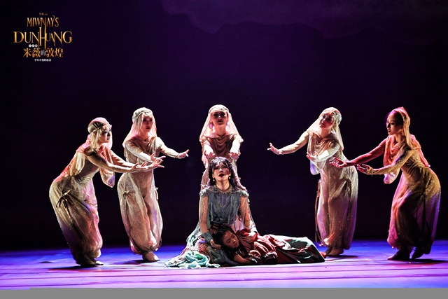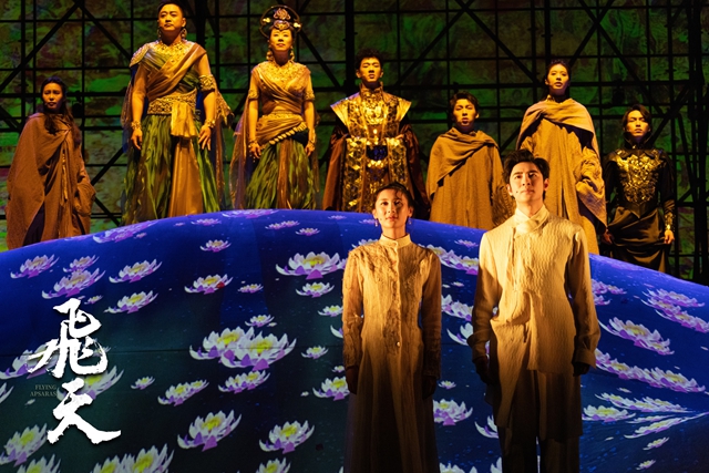 音乐剧《飞天》以习近平总书记在敦煌研究院座谈时的重要讲话精神为指导,立足于博大精深的敦煌文化,从内涵丰富的敦煌壁画中获取创作灵感。该剧运用抽象和象征的艺术表现手法,着力赓续中华文脉、推动中华优秀传统文化创造性转化和创新性发展;致敬千百年来的敦煌文物传承者和守护者,弘扬“坚守大漠、甘于奉献、勇于担当、开拓进取”的莫高精神,让广大观众在一场穿越时空的文化之旅中更加关注莫高石窟珍贵文物保护和修复;研究和弘扬敦煌文化艺术,让世界文化遗产在保护利用中永续传承。该剧开创“央地协同、优势互补”新模式,由甘肃省委宣传部、甘肃省文化和旅游厅统筹支持,中国东方演艺集团牵头组建国内顶尖创作团队,联动中央民族乐团与本土艺术院团联合创排。这一模式既保障了作品的艺术高度与市场潜力,更实现了国家级院团资源与地方文化特色的深度融合,为重大主题创作提供了资源整合的新思路。在传播方面,项目主动拥抱“互联网+”思维,通过丰富的线上内容建设和互动营销,极大地拓展了其文化影响力。