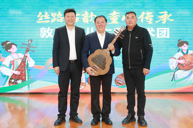 艺术团聘请了传统乐器制作技艺非遗传承人曹卫东、敦煌舞专家史敏教授、敦煌文化学者汪雪博士等担任特聘专家,现场还举行了专家聘书颁发仪式及乐器捐赠环节。曹卫东作为专家代表发言,表示将积极推动敦煌古乐在青少年中的活态传承与创新转化。