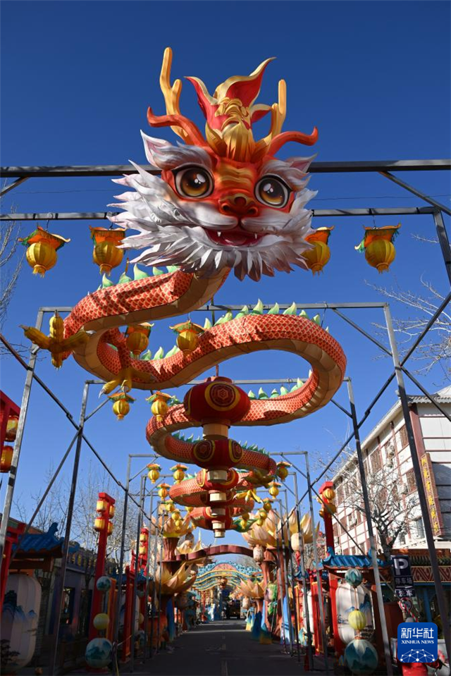 这是12月28日在敦煌夜市拍摄的特色花灯安装现场。新华社发(张晓亮 摄)