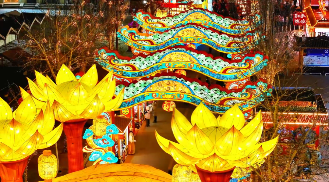 上海游客杨雯如说:“我感到整个灯会的布置非常精致好看,那边很多灯,它是做成了十二生肖的形状,融合了中国的传统文化,还有莫高窟里面的一些动物的造型,我觉得就是把夜市点亮得非常出彩。”