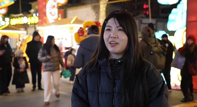 敦煌灯会NPC阿妍说:“我这个点的游戏名称是丝路毽影,主要是踢毽子闯关,玩法有很多。今天有很多市民游客都来体验,也赢得了很多银票。2026年我祝大家身体健康,祝愿我们敦煌越来越好,也祝福祖国繁荣昌盛。”