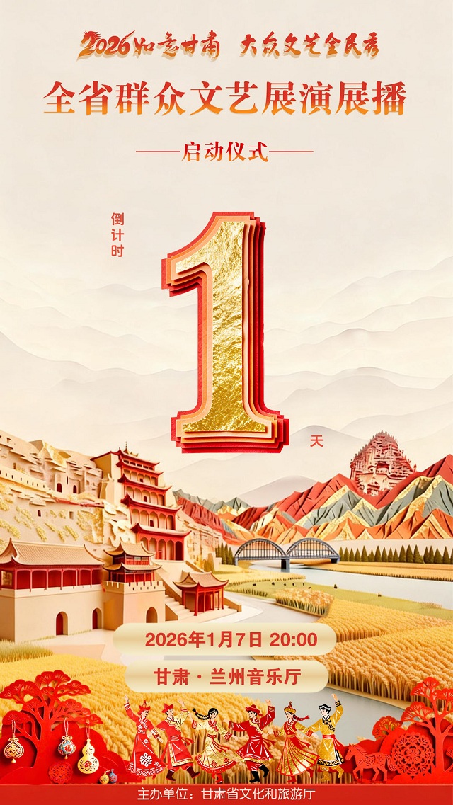 文艺掀热潮,陇原共欢腾!“2026如意甘肃 大众文艺全民秀——全省群众文艺展演展播”启动仪式,将于1月7日晚8点在兰州音乐厅拉开帷幕。届时,活动将通过如意甘肃抖音号、微游甘肃视频号、国家公共文化云、甘肃省公共文化服务云、视听甘肃等平台同步直播,让群众文艺从“方寸舞台”进入“陇原万家”!