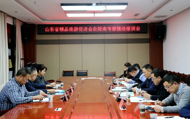 1月13日,山东省精品旅游促进会考察团一行到陇南市开展文旅东西部协作交流活动并召开座谈会。青岛协作陇南第四批挂职工作组相关负责人及成员、陇南市文化广电和旅游局相关负责人及工作人员参加了座谈会。