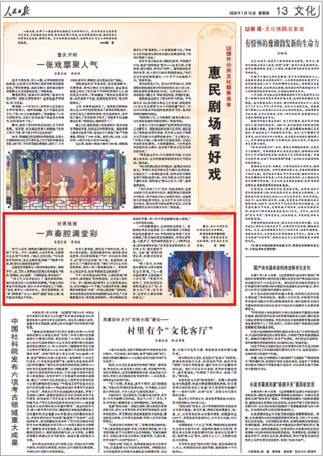一声秦腔满堂彩,让演员动力更足了。惠民演出常态化运营后,七一剧团演员人均演出时长较此前提升40%,年轻演员也得到了充分的锻炼。“现在每场都坐得满满的,和观众离得近,交流多了,唱和演都更稳当了。”《痴梦》主演、青年演员种妙说,“好多老戏迷场场都来,我们唱上句,他们能接下句。这也‘逼’着我们得更认真,把最好的状态拿出来。”