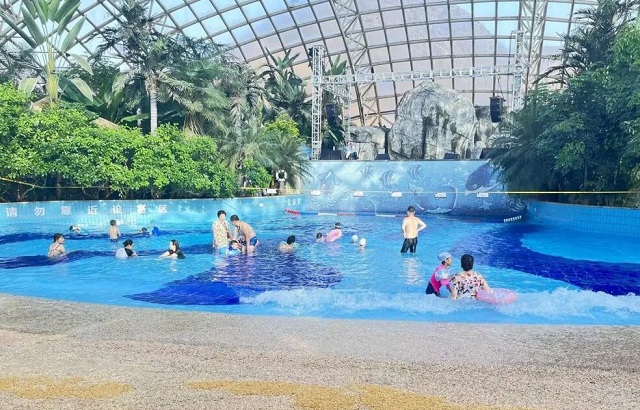 温泉池中热气蒸腾