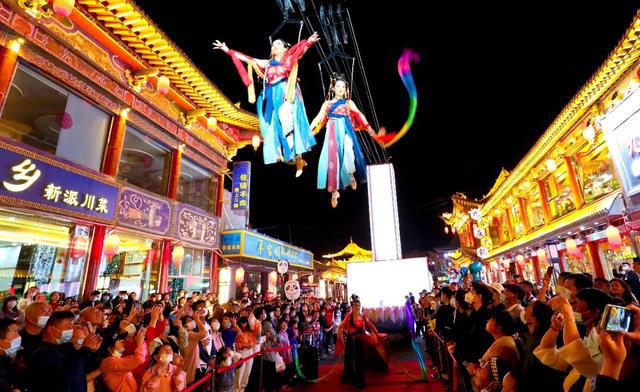 “夏天傍晚,演艺一开场,街上立马人挤人!游客们忙着拍照录视频,人气一旺,我们店里的生意也跟着火起来了。”街口特产店店主苏振明笑着说。