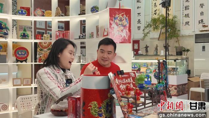 图为1月20日,兰州文旅“博物馆之夜”主播与兰州市博物馆工作人员向直播间观众介绍兰博系列文创产品。 窦海文 王燕 摄