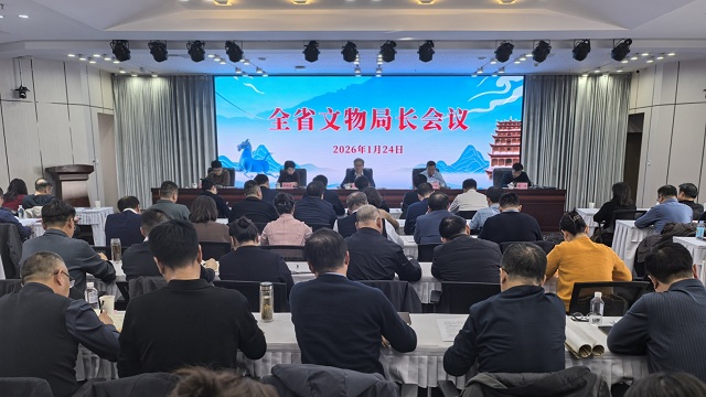 1月24日,2026年全省文物局长会议在兰州召开。会议坚持以习近平新时代中国特色社会主义思想为指导,全面贯彻落实党的二十大和二十届历次全会精神,深入学习实践习近平文化思想,认真贯彻落实习近平总书记关于文化遗产保护传承的重要论述和视察甘肃重要讲话重要指示精神,落实全国全省宣传部长、文化和旅游厅局长及全国文物局长会议部署,回顾总结2025年和“十四五”成绩,谋划部署“十五五”和2026年重点任务。会议传达学习了省委书记、省人大常委会主任胡昌升对全省文物工作作出的批示要求。