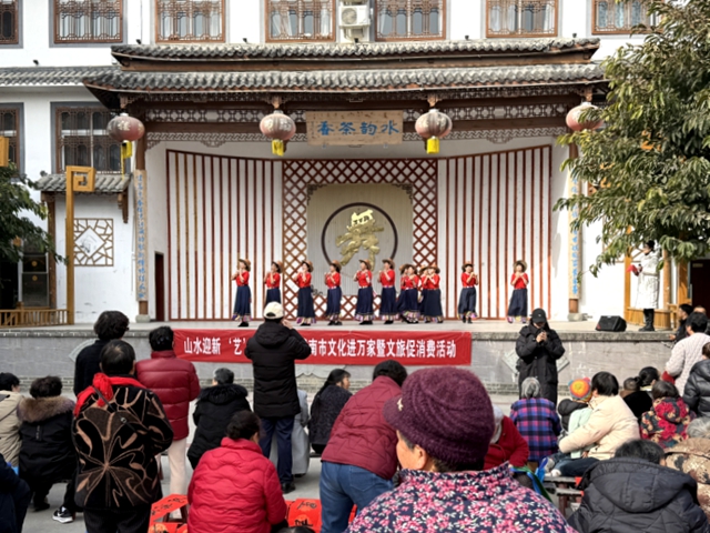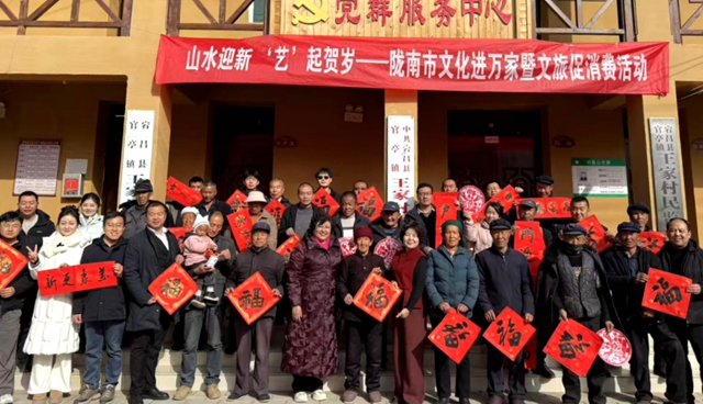 春潮涌动处,文化润民心。为迎接即将到来的新春佳节,丰富群众精神文化生活,激活冬春文旅消费市场,1月27日至28日,陇南市文化广电和旅游局开展的“山水迎新 ‘艺’起贺岁——陇南市‘文化进万家’暨文旅促消费活动”先后走进文县碧口古镇、宕昌县官亭镇王家村,将精彩的文艺盛宴、丰厚的文化福利送到群众家门口,让大家在欢声笑语中感受文化魅力,在特色体验中点燃消费热情。