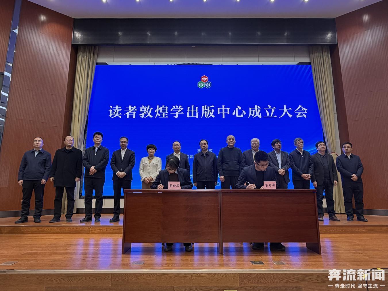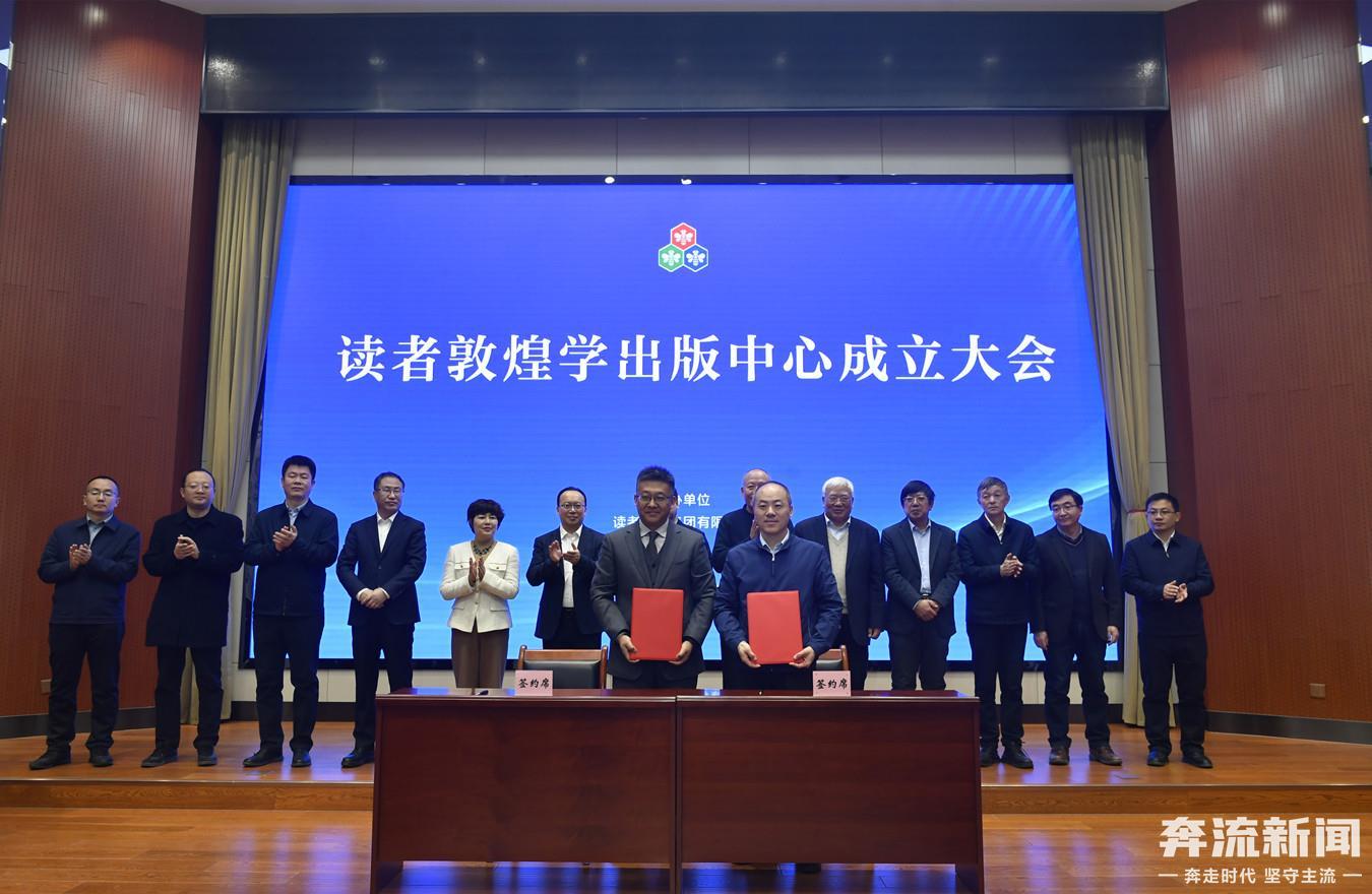 1月31日上午,读者敦煌学出版中心在读者出版集团挂牌成立。省委宣传部副部长、省新闻出版局(省版权局)局长邵志刚出席成立大会并讲话。读者出版集团党委书记、董事长张斌强,敦煌研究院院长苏伯民分别致辞。读者出版集团党委副书记、总经理王光辉主持会议。著名敦煌学专家郝春文、荣新江、郑炳林、张小刚、沙武田出席成立大会,张涌泉、刘进宝、赵声良以贺信、视频等形式对读者敦煌学出版中心的成立表示祝贺。