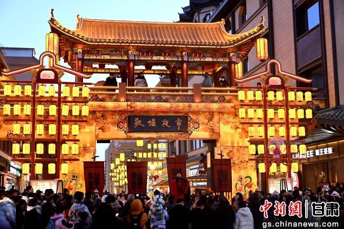 随着春节的临近,甘肃省敦煌市旅游持续升温,游客走进丝路敦煌,欣赏大漠风光,感受文化魅力。与此同时,敦煌夜市张灯结彩,热闹非凡,年味十足。张晓亮 摄