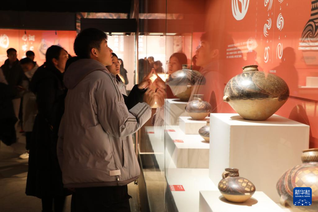 观众在甘肃省博物馆参观“从黄河到天山——史前彩陶的西渐之路”文物展。新华社记者 张智敏 摄