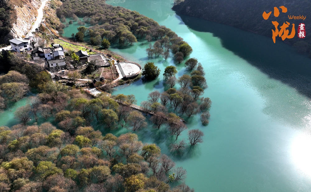白龙江湍急的流速在此悄然蜕变为一湾温婉的碧波,水面澄澈如镜,映照出如江南般清浅而缠绵的景致。