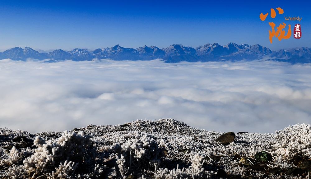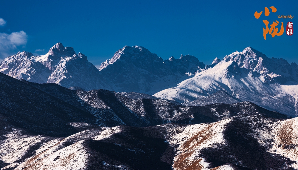 马牙雪峰披着一身无瑕的纯白,静立于层叠起伏的山谷之间。高处是皑皑雪冠,低处是深谷幽影,这一高一低,一远一静,在视觉与意境上形成了完美的平衡。