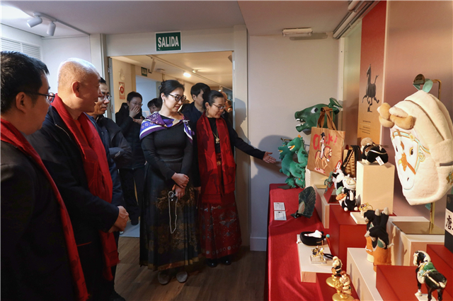 当地时间2月8日,2026年“欢乐春节”系列活动在西班牙马德里启幕。作为此次系列活动的重要组成部分,“文创里的古代中国”展览于马德里中国文化中心开幕。由甘肃省文化和旅游厅指导推荐、甘肃省博物馆选送的铜奔马系列12款文创产品在展览中精彩亮相,以鲜活灵动的文创语言,向西班牙观众传递了中国春节的喜庆韵味与甘肃文物文创的独特魅力。