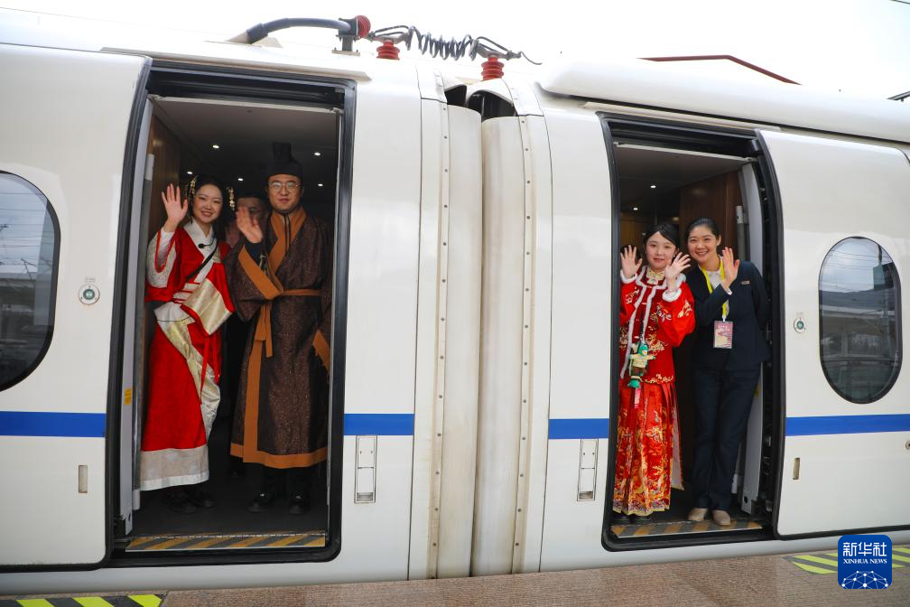2月9日,由中国铁路兰州局集团有限公司、甘肃省文化和旅游厅、甘肃省文物局联合打造的“高铁流动博物馆”G848次列车从兰州西站发车,驶往广州南站。敦煌研究院、甘肃省博物馆等9家甘肃当地的国家一级博物馆,将陇原文脉“搬上”飞驰列车,让旅客在出行中触摸历史的温度,让传统年俗在春运车厢里焕发新彩。