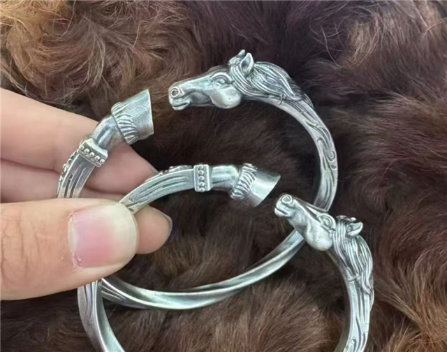 肃北非遗手作珍品,由本地匠人纯手工打制。采用足银材质,质地温润厚重,通过錾刻、浮雕等传统工艺,将黑山岩画古马图腾、草原毡房等元素复刻其上,纹理细腻、造型古朴大气。不管是小巧的银手镯、银吊坠,还是精致的银饰挂件,都承载着草原游牧文明的底蕴,戴在身上低调有质感,还藏着马到成功的吉祥寓意。
