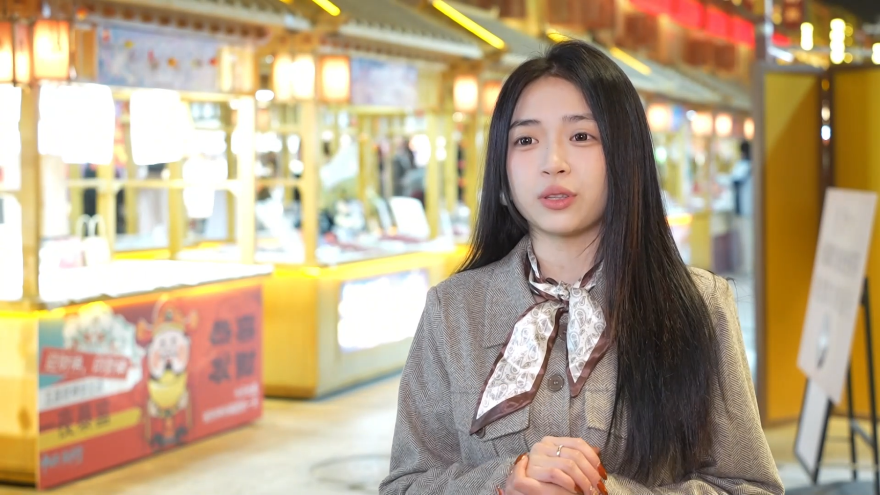 上海游客蒋海凌说:“敦煌夜市把文化和现代年轻人喜欢的古风国韵都融合在一起,我们走着走着就会发现有一些NPC的场景,互动体验感都非常好,我们看到了包括张骞、财神的互动,现在年轻人包括小朋友、老年人都非常有参与感,游戏的种类也特别丰富。作为游客来说,给我们的体验感、参与感、融入感都非常好。”