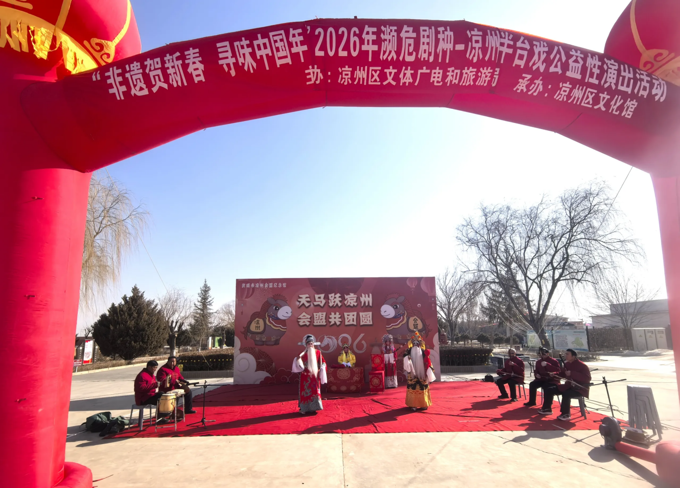 金鼓启新岁,非遗耀凉州。为传承弘扬优秀传统文化,丰富春节期间群众文化生活,让非遗与旅游相融、让年味与乡愁共生。正月初一,凉州区文化馆组织凉州攻鼓子、凉州贤孝、凉州半台戏等国家级、省级非遗走进五凉文化博物馆、文庙景区、凉州会盟纪念馆、神州荒漠野生动物园、雷台景区五大文旅地标,开展“非遗贺新春 寻味中国年”公益性展演展示活动,以活态非遗点亮新春佳节,让千年凉州文脉在烟火人间绽放新彩。