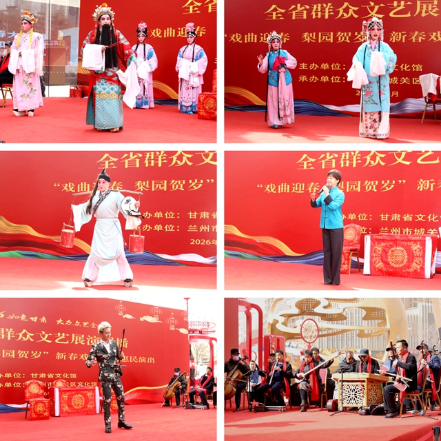 为深入贯彻落实公共文化服务惠民政策,传承弘扬中华优秀传统文化,2月22日,由甘肃省文化馆主办、兰州市城关区文化馆承办的“2026如意甘肃 大众文艺全民秀 全省群众文艺展演展播”——“戏曲迎春 梨园贺岁”新春戏曲专场惠民演出在兰州市万达广场成功举办。本次活动通过国家公共文化云、甘肃省公共文化云、视听甘肃客户端、甘肃省文化馆视频号等9个平台同步直播,线上累计观看量达117.7万人次。