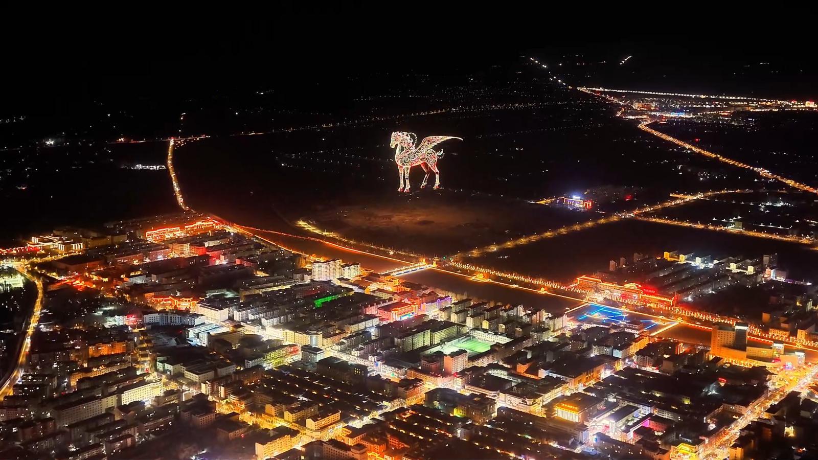 2月22日晚,10000架无人机在敦煌夜空集体“作战”,以恢弘阵势点亮丝路古城。这场以“科技与文明交辉,敦煌与世界对话”为主题的视觉盛宴,将莫高窟壁画、九色鹿、翼马等文化符号与高铁等现代元素融于一炉,让千年文明在星河间“活”了起来。